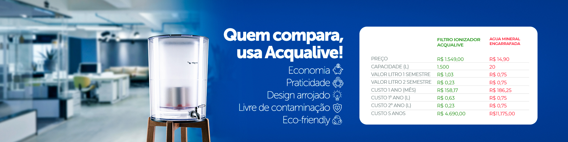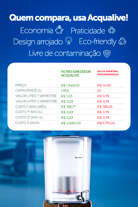 Os filtros ionizadores da Acqualive transformam a água comum em uma água pura, alcalina e ionizada.